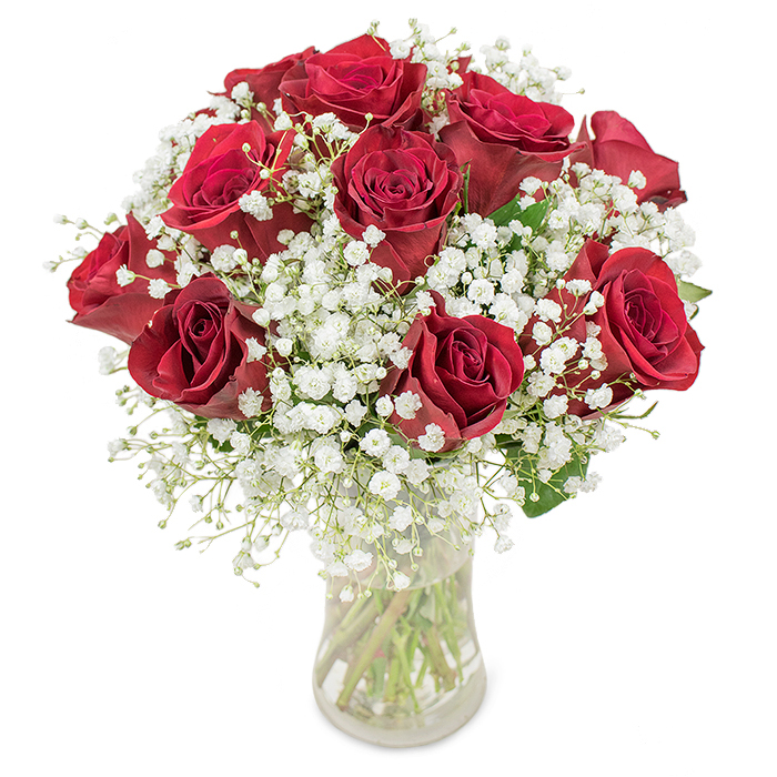 Express your heartfelt emotions with our Charming Red Rose & White Gypsophila Bouquet. This exquisite arrangement blends vibrant red roses with delicate white gypsophila, creating a bouquet that is both beautiful and unique.